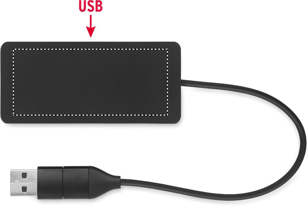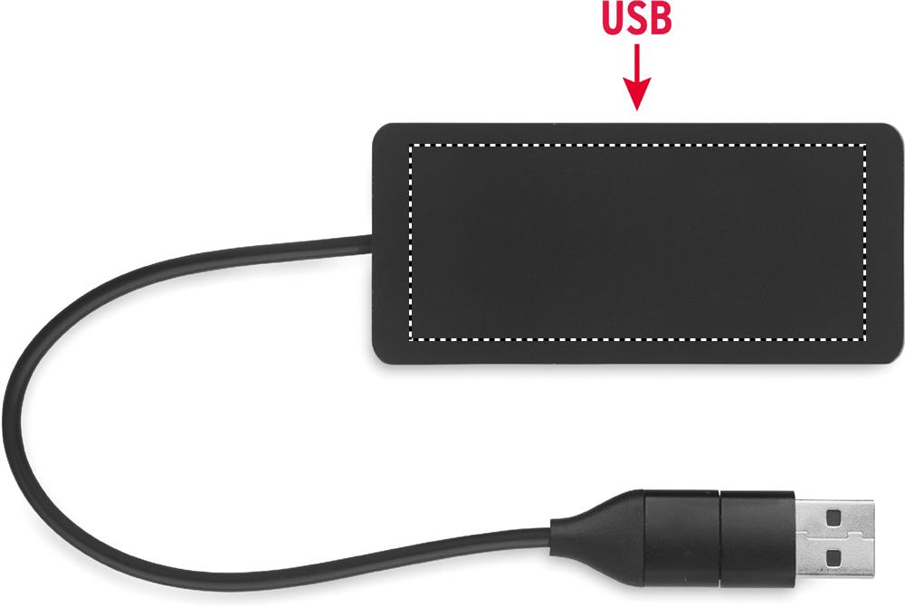3 portin USB-keskitin kierrätettyä alumiinia. Lähtö: 2 x Type-A ja 1 x Type-C. Tulo: 2-in-1 Type-C and Type-A. Kaapelin pituus: 20 cm.