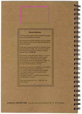 Logotrade mainoslahja tuotekuva: A5 ECO Muistilehtiö KENTWOOD