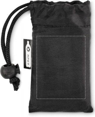 Avaruuslakana RPET-polyesteristä valmistetussa vetoketjupussissa. Peitteen koko 130 x 210 cm, paino 1,5 kg.