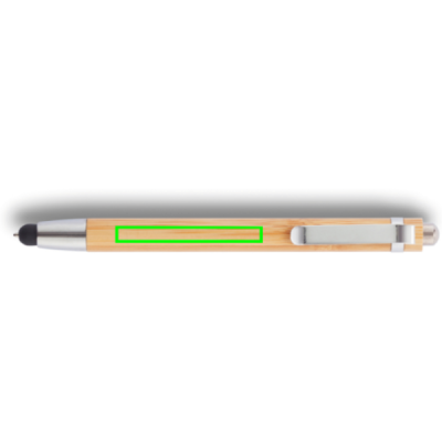Bambukosketuskynä integroidulla osoitinkärjellä ja kuulakärjellä.