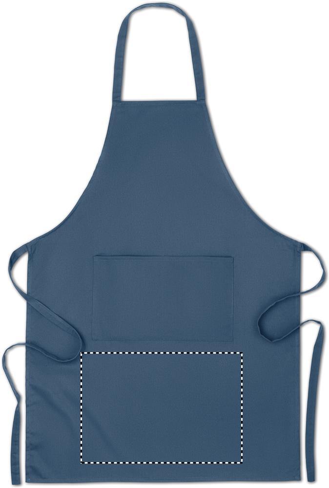 200 gr/m² orgaanisesta puuvillasta valmistettu esiliina, 2 etutaskulla.