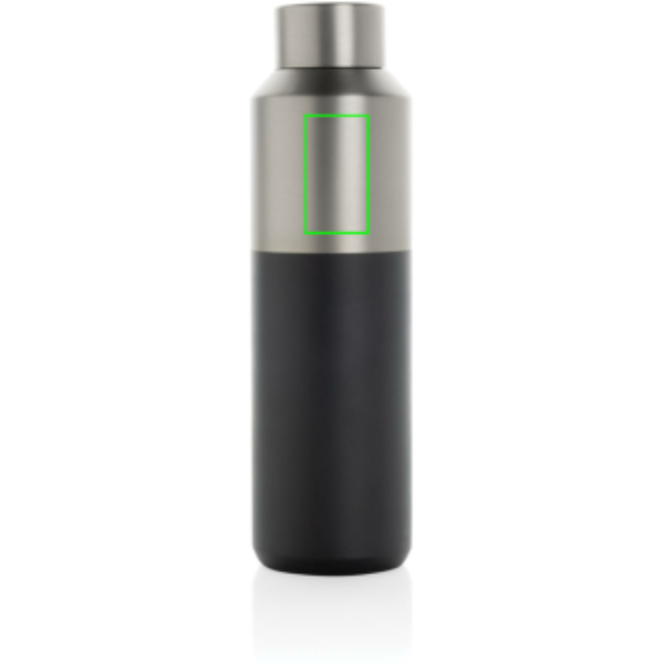 Tässä 600 ml:n vesipullossa on erottuva kaksivärinen ulkokuori, jossa on tyylikäs puolet ja puolet -muotoilu. Kaksiseinäinen kierrätetystä ruostumattomasta teräksestä valmistettu tyhjiörakenne pitää juomat jäähdytettyinä jopa 15 tuntia tai lämpiminä jopa 5 tuntia. Vesipullo sopii useimpiin tavallisiin auton kuppipidikkeisiin, joten se on täydellinen matkakäyttöön. Valmistettu RCS (Recycled Claim Standard) -sertifioiduista kierrätysmateriaaleista, mikä takaa täysin sertifioidun kierrätysmateriaalien toimitusketjun. BPA-vapaa. Sisältää FSC®-sertifioidun Kraft -lahjapakkauksen. Kierrätetty kokonaissisältö: 95 % tuotteen kokonaispainosta.