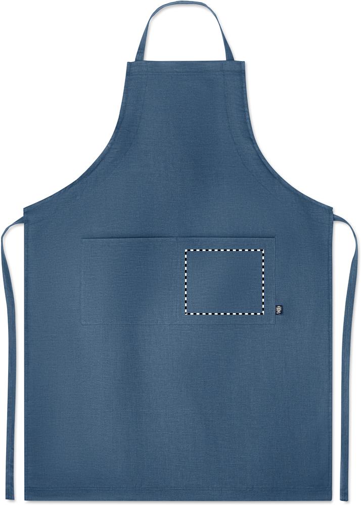 200gr/m² säädettävä 100% hamppukankaasta valmistettu esiliina, kahdella etutaskulla.