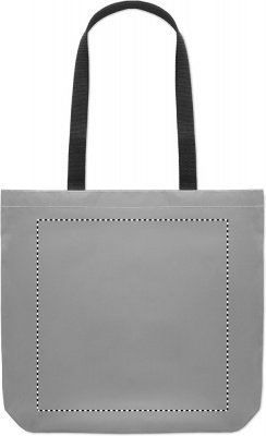 Heijastava 190D-polyesteristä valmistettu ostoskassi, jossa on pitkät kahvat. Tämä kauppakassi on valmistettu heijastavasta materiaalista, joka lisää näkyvyyttä pimeässä ympäristössä. Voit kantaa kassia kädessä tai olalla, jolloin sinulla on molemmat kädet vapaina.