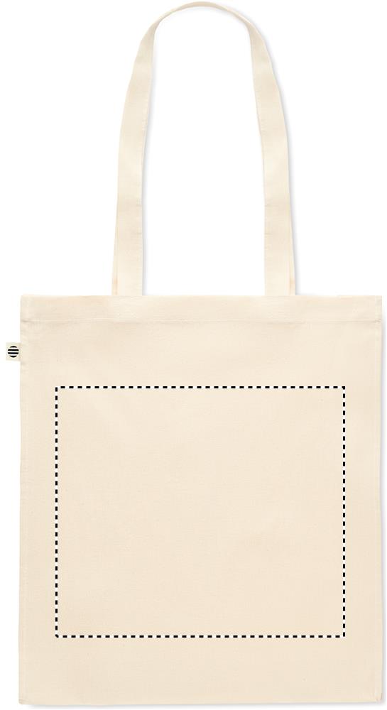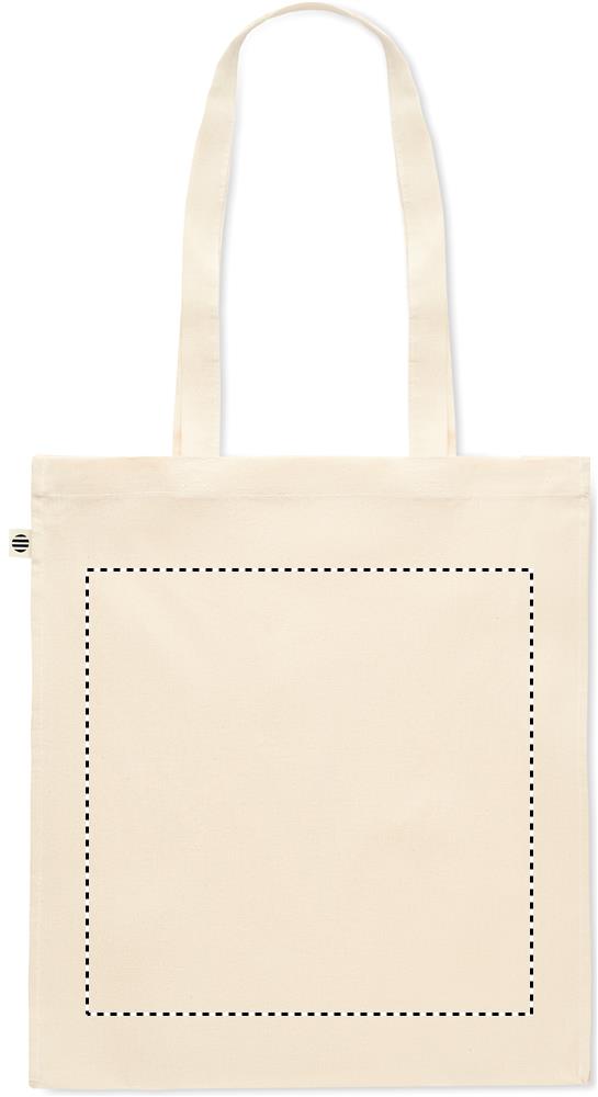 140 gr/m² luomupuuvilla kassi pitkillä kahvoilla ja pohjalevikkeellä.