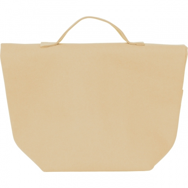 Kylmälaukku kierrätetystä puuvillasta ja kierrätetystä polyesteristä. Laukussa on kantokahva, leveä tarranauhakiinnitys ja etutasku. Logosi on painettu etutaskuun.
