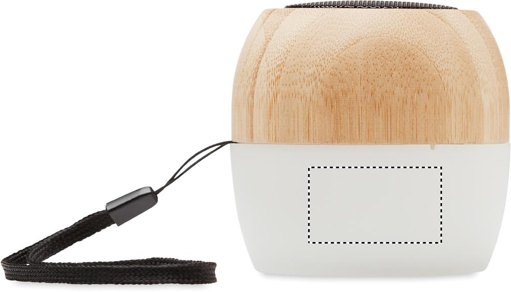 5.0 PP/ bambu langaton kaiutin 4 erillaisella tunnelmavalolla, lähtövirta 3W, 4 Ohm. 300 mAh litium polymeeri akku antaa kaiuttimelle arviolta 2 tuntia toistoaikaa. Luonnollisen materiaalin (bambu) vuoksi, tuotteiden värissä/ koossa saattaa olla erinäisyyksiä ja tämä voi vaikuttaa painatuksen lopputulokseen.