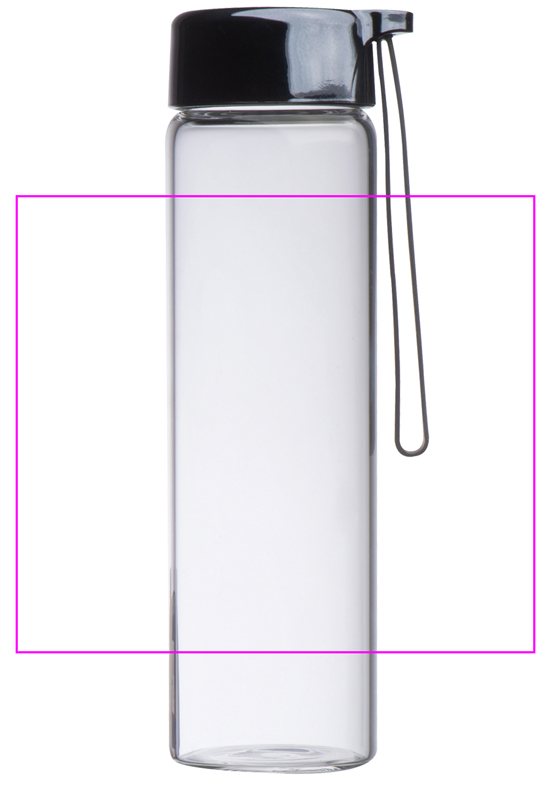 Lasipullo PP-kannella ja täyttökapasiteetti 450 ml. Logosi kaiverretaan lasiin.