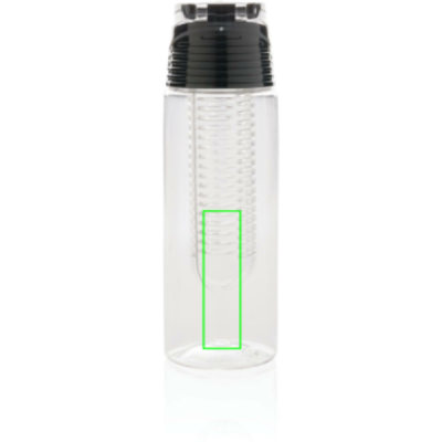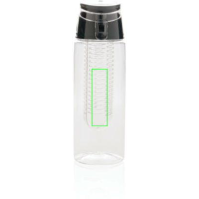 Trendikäs infuusiopullo veden maustamiseen hedelmillä ja yrteillä. Runko naarmuuntumatonta ja kestävää tritaania. Lukittava kansi ABS-muovia. Tilavuus 700ml.