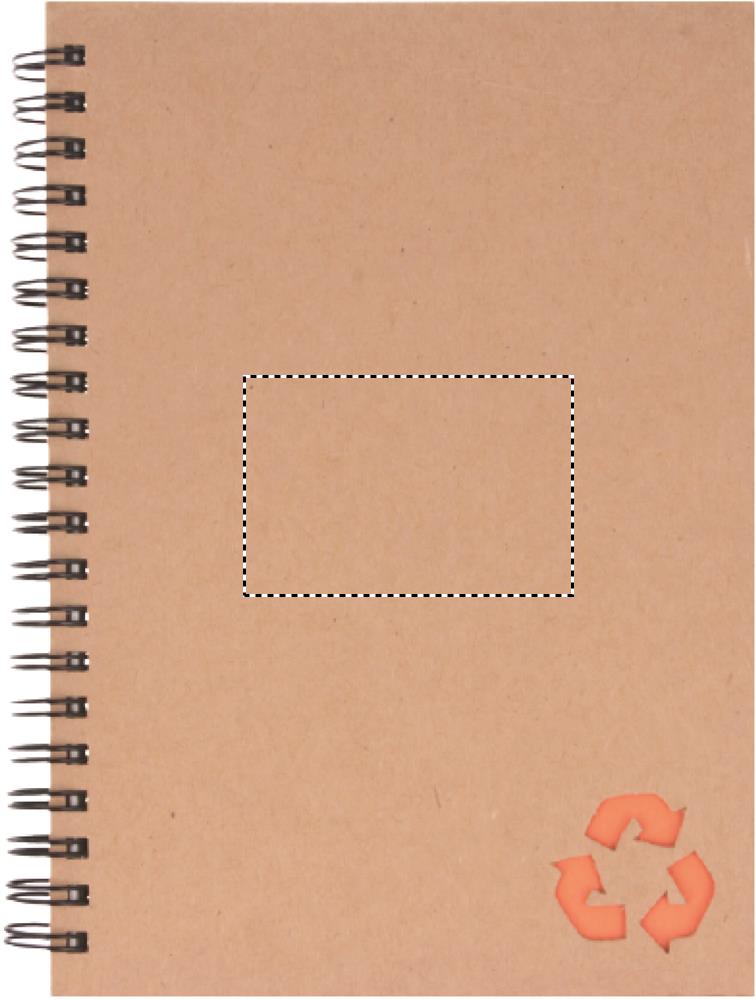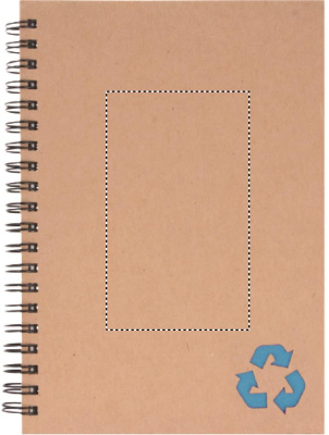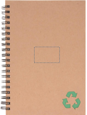 Muistikirja jonka kansi on kierrätyskartonkia. Kierresidonta. 140 viivoitettua mineraalipaperisivua (70 arkkia). Mineraalipaperi on valmistettu kalsiumkarbonaatista. ja sideaineena käytettävästä HDPE:stä (polyeteenihartsi). Se on vedenkestävä ja kestää myös rasvaa.