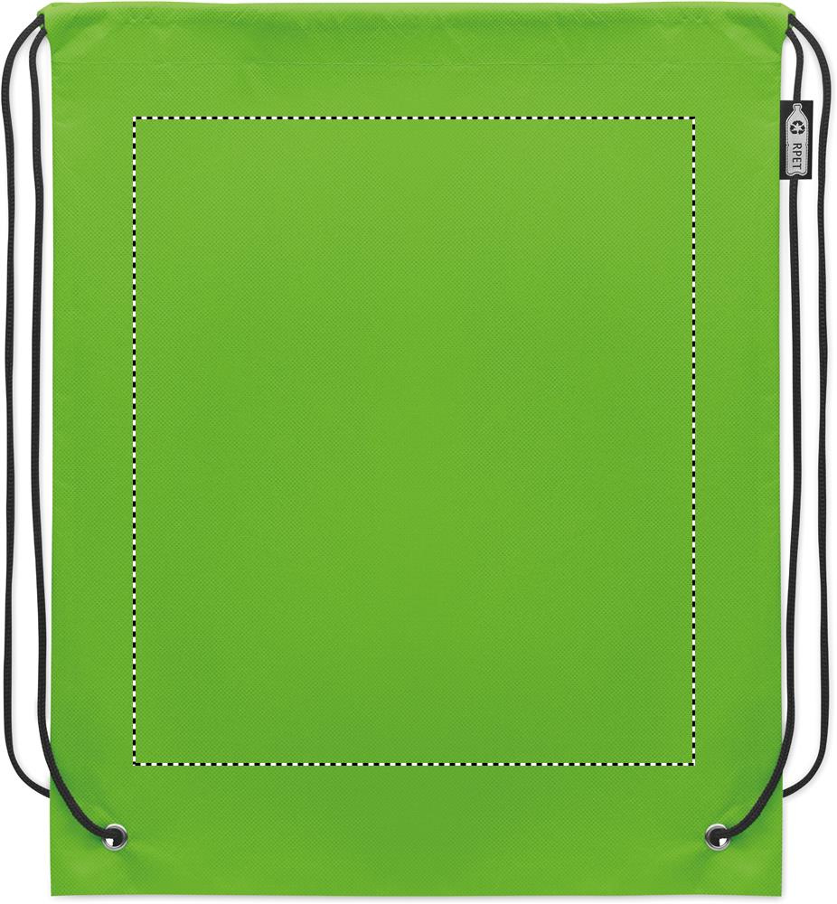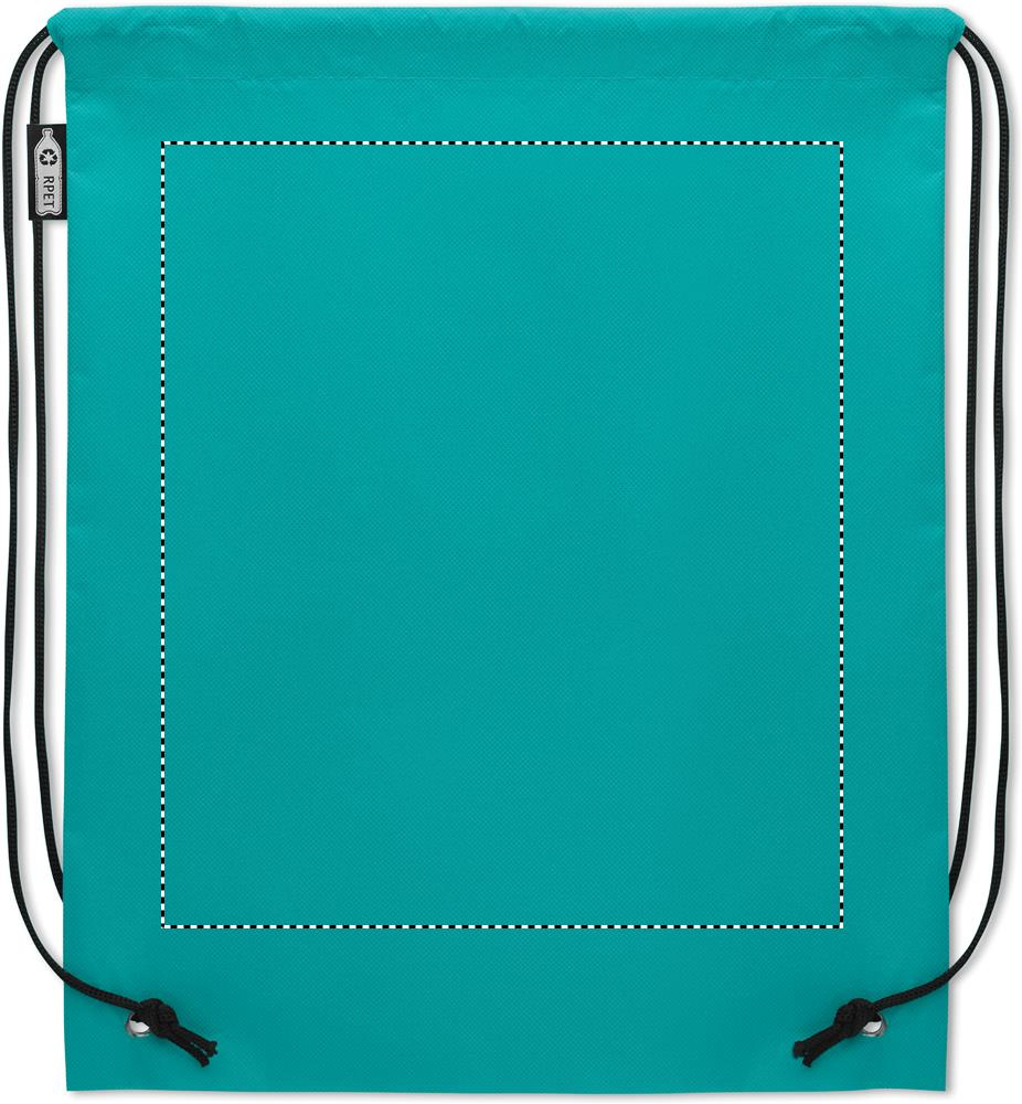 RPET-kuitukankaasta valmistettu narureppu jossa on polyesterinarua. 80 gr/m².