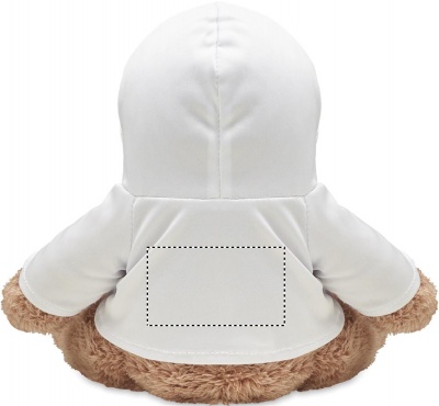 Iso nalle pehmolelu, jolla on hupullinen paita. Ihanteellinen sublimaatiopainatusta varten.
