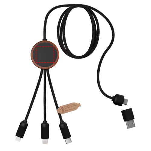 Tuotteet Luontoa säästävät mainostuotteet SCX.design C37 5-in-1 RPET-latauskaapeli pyöreällä puukotelolla, jossa valotehostettu logo