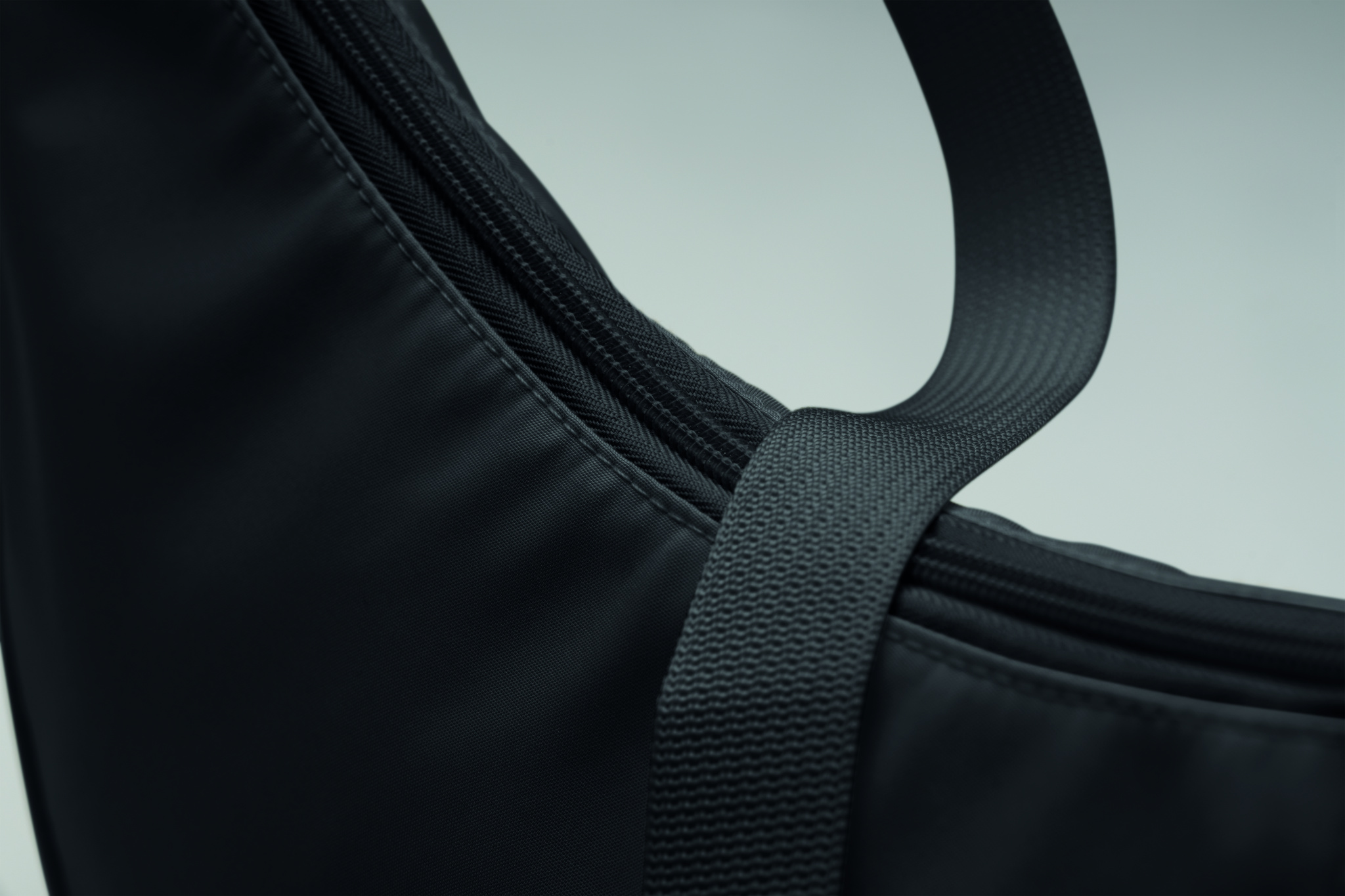 Puolikuun muotoinen yliolan laukku 400D Oxford -kankaasta ja 210D RPET-vuorilla. Yksi vetoketjullinen päätasku ja kaksi sisätaskua.