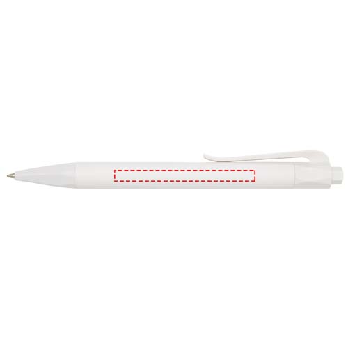 Napsautettava pitkäkestoinen ja uudelleentäytettävä kuulakärkikynä, joka on valmistettu 100-prosenttisesti PLA:sta (maissimuovi), mikä vähentää käytetyn muovin määrää. Sisältää patruunan, jolla kirjoitat noin 2 000 metriä. Kynä toimitetaan vakiona sinisellä patruunalla. Pakattu kartonkiseen kynäsuojukseen.