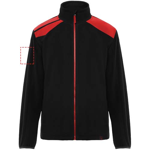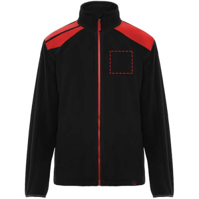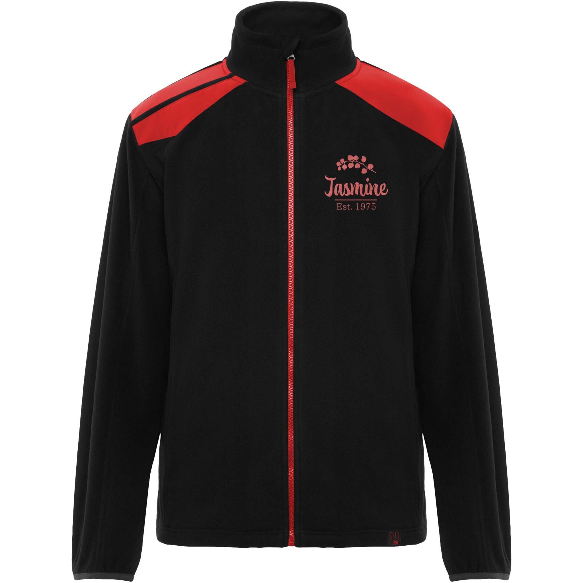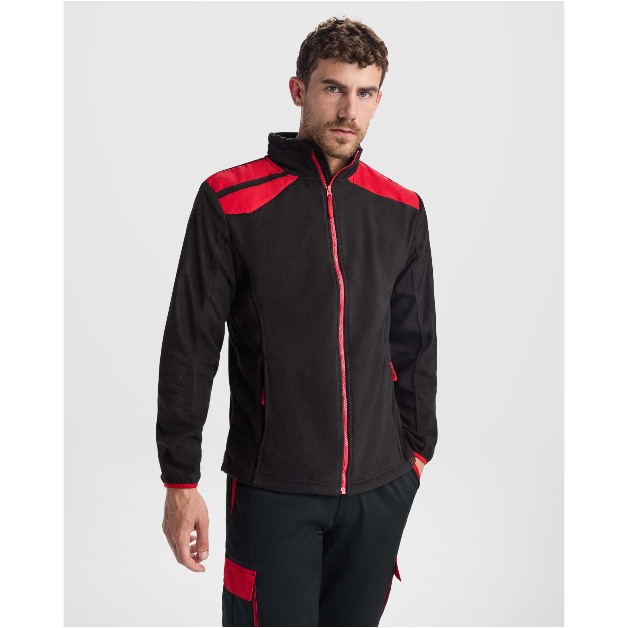 Mikrofleecetakki väriyhdistelmällä. Korkea kaulus ja kontrastivärinen muovivalettu vetoketju. Kontrastiväriset olkapäät ja yksityiskohdat. Vetoketjulliset sivutaskut. Joustavat hihansuut ja sivusäätönauhat helmassa.