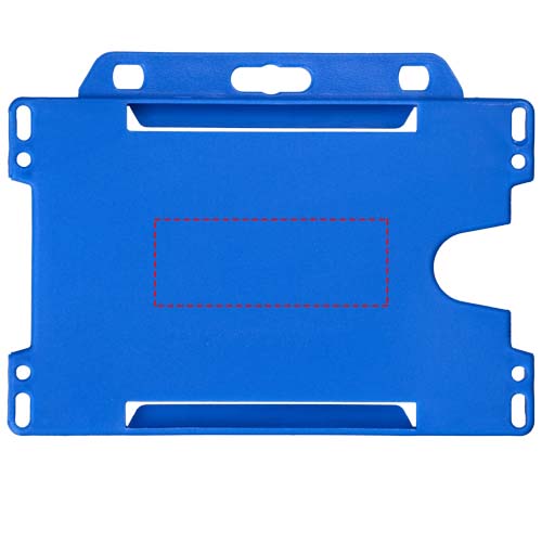 Korttipidike, vaakamalli. Ihanteellinen messuille tai työpaikalle. Pidikkeeseen sopii vakiokokoinen käyntikortti ja luottokortin kokoinen kortti.