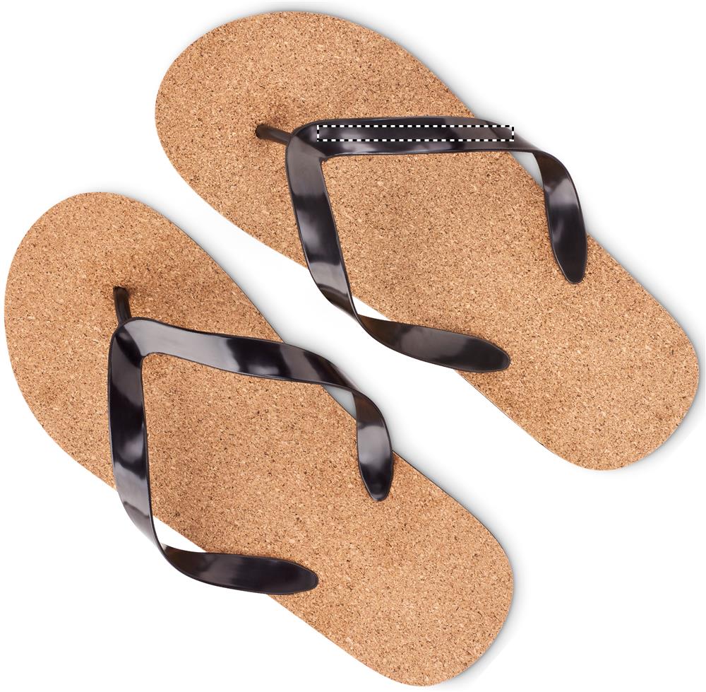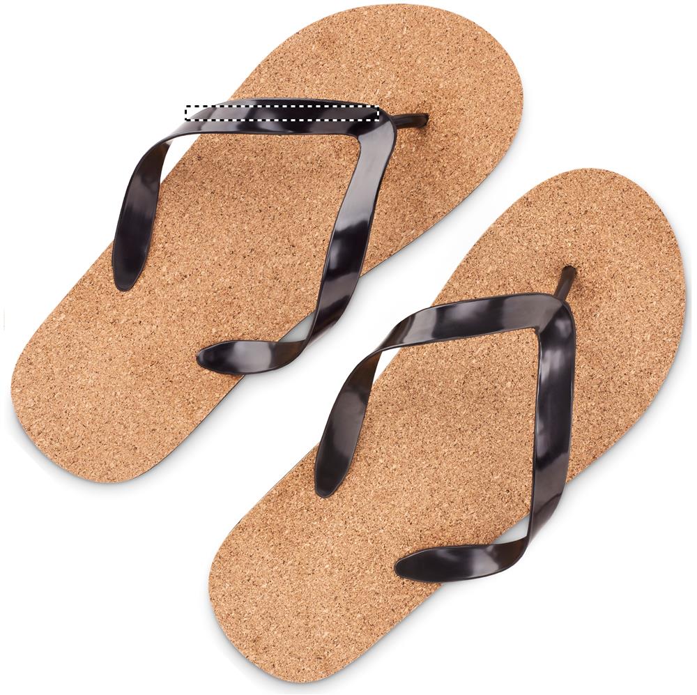 Paplūdimio šlepetės su kamštiniu ir EVA padu bei PVC petnešėlėmis. M dydis tinka 36-39. Kamštiena yra natūrali medžiaga, dėl savo struktūrinio pobūdžio ir paviršiaus poringumo galutinis spaudos rezultatas kiekvienam gaminiui gali turėti nukrypimų.