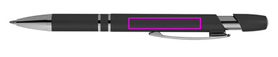 Metalinės išvaizdos plastikinis tušinukas su didelės talpos papildymo ir stūmimo funkcija. Po klipu atspausdinsime Jūsų logotipą.