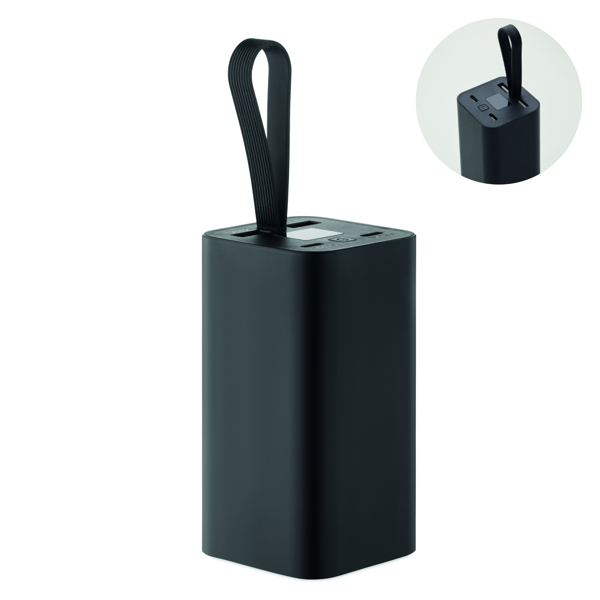 20 000 mAh pārnēsājamais akumulators, kas izgatavots no pārstrādāta alumīnija, ar digitālu uzlādes displeju un silikona stiprinājumu. Aprīkots ar divām Type-C un divām USB-A izejām ar PD 65 W ātro uzlādi.