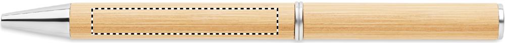 Pagriežama bambusa lodīšu pildspalva ar metāla stiprinājumu. Zilā tinte. Bambuss ir dabisks produkts, katrai precei var būt nelielas krāsas un izmēra atšķirības, kas var ietekmēt gala apdares rezultātu.