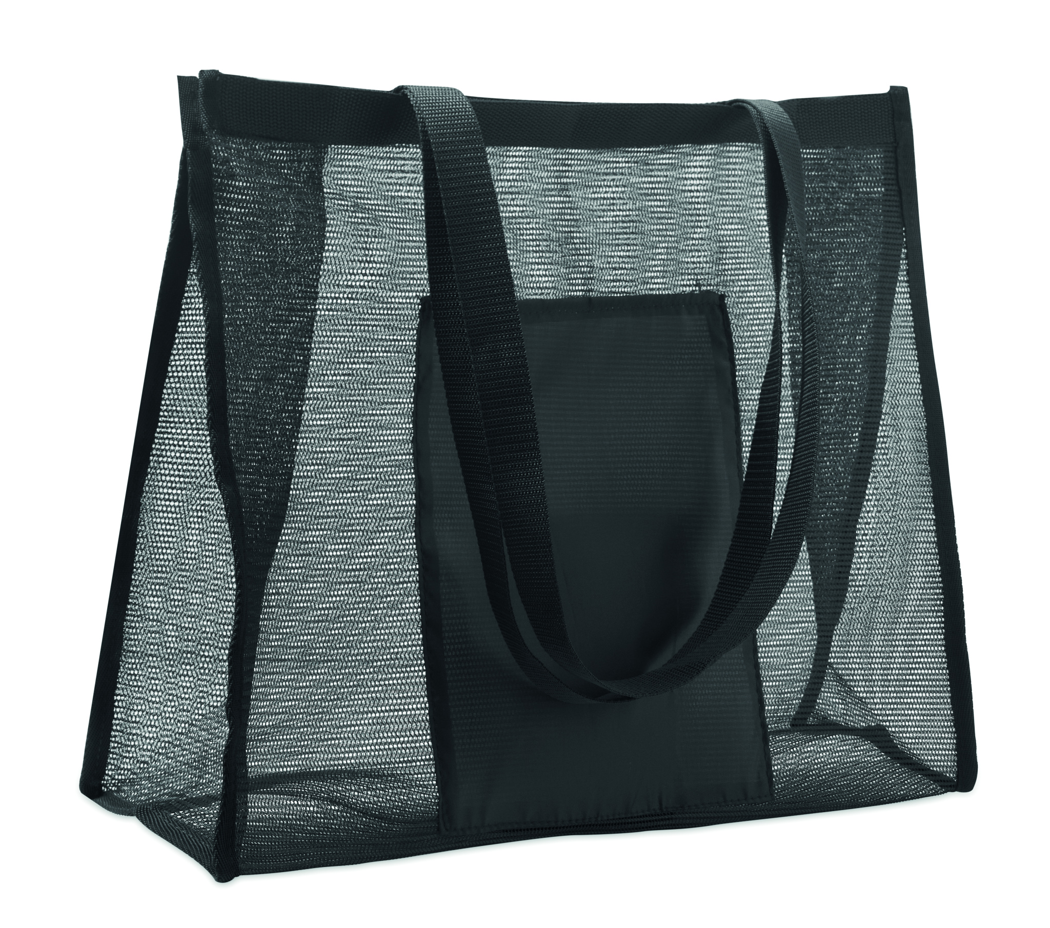 Iepirkumu soma, kas izgatavota no RPET sieta un 210D RPET auduma ar īsiem rokturiem. Iekļauts liels vaļējs priekšējais nodalījums. Tilpums 20 l, slodze līdz 10 kg.