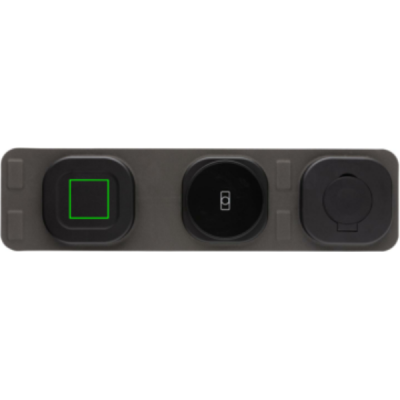 Grezns un salokāms 3-in-1 bezvadu lādētājs, kas izgatavots no RCS pārstrādāta ABS Kopējais pārstrādātais saturs: 46% no kopējā preces svara. RCS sertifikācija nodrošina pilnībā sertificētu pārstrādāto materiālu piegādes ķēdi. Bezvadu lādētājs ir aprīkots ar magnētisku 15 W bezvadu lādētāju un papildu 5 W bezvadu lādētāju, kas piemērots austiņu maciņiem vai citām mazām bezvadu uzlādējamām ierīcēm, un 2,5 W bezvadu lādētāju viedpulksteņiem (tikai Apple pulksteņiem). Ietver RCS sertificētu 120 cm pārstrādātu TPE kabeli. Iepakots FSC® mix kraft iepakojumā. Prece un aksesuāri 100% bez PVC. Ieeja: 9V/3A optimālai lietošanai. Izeja: Tālrunis: 9V/1.1A; 9V/1.67 A/(15W), Austiņas: 5V/1A (5W), Pulkstenis: 5V/0.5A.