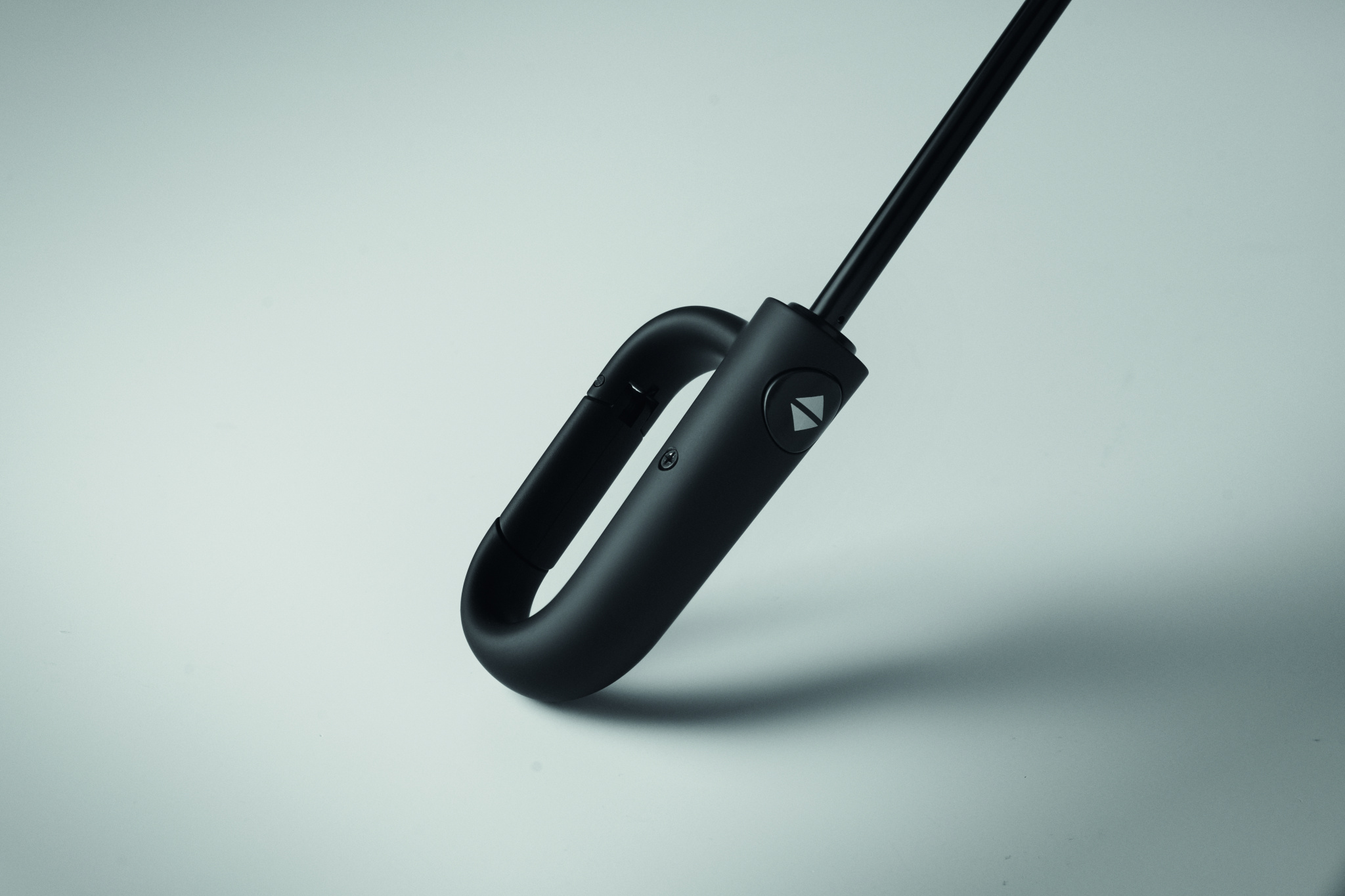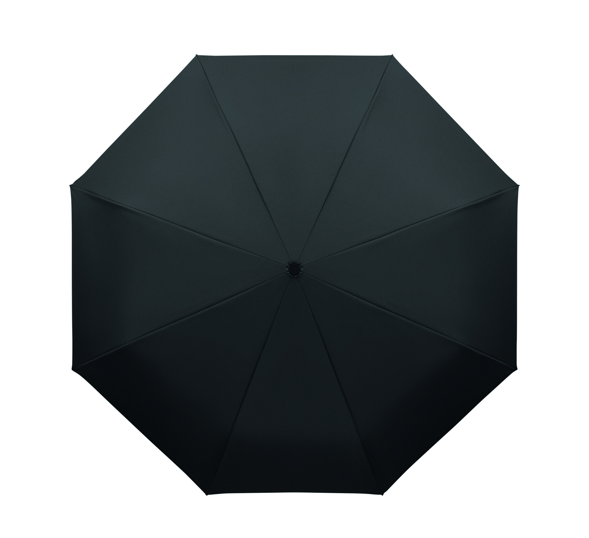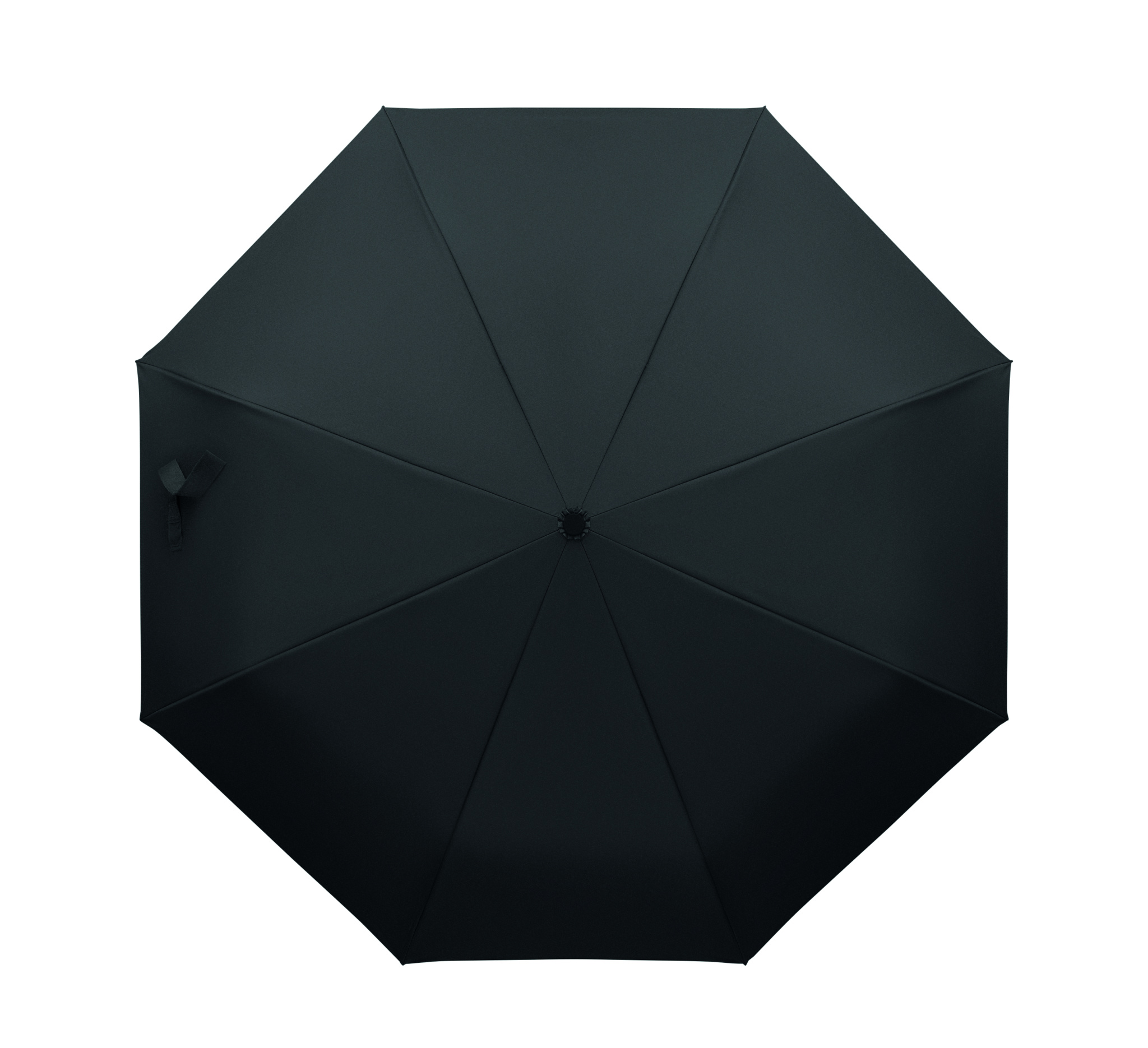 Foldable 21'' windproof umbrella with full black plating fibreglass frame with 2 sections. Fibreglass ribs. 190T RPET pongee panels. D shape carabiner handle w/ rubber finish. Auto open and closure. Includes pouch