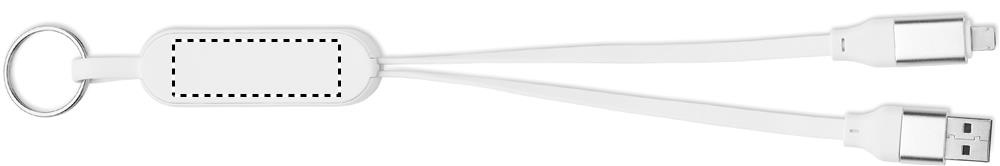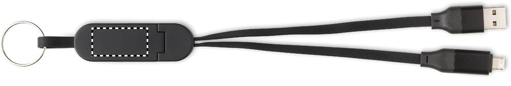 60W cable in recycled ABS casing with keyring and phone stand. Input: 2-in-1 Type-C and Type-A. Output: Type-C and micro-B (2 in 1 pin). Cable length: 26 cm.
