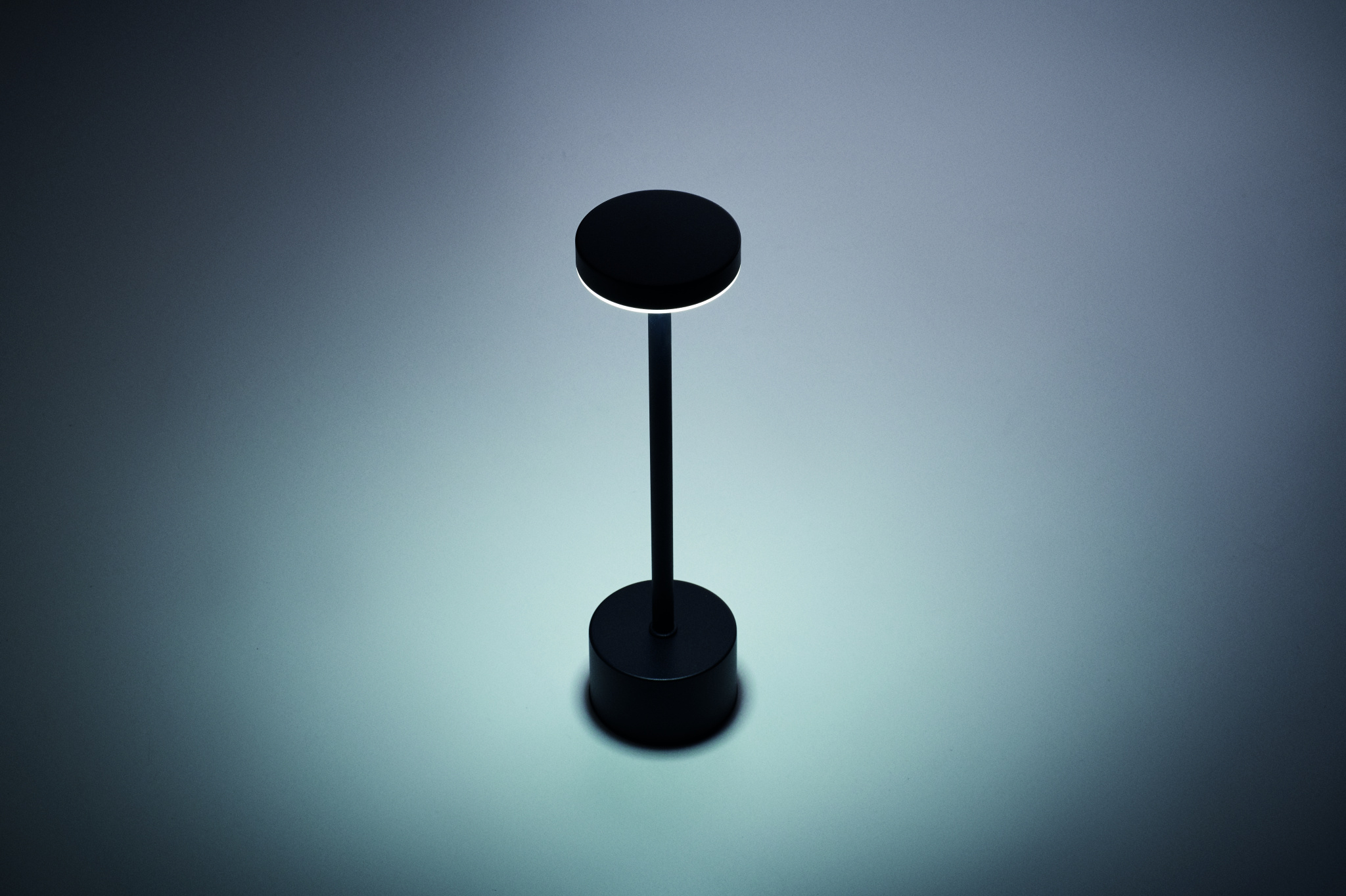 Aluminium table lamp with 24 LEDs, 3 light modes and touch control. Features stepless dimming and 1200mAh rechargeable Li-Ion battery with 6hr use.