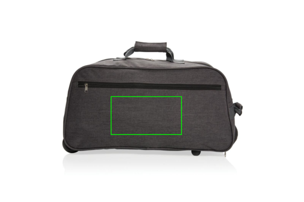 600D высокоплотная сверхпрочная двухцветная полиэстеровая ткань. С выдвижной системой тележек. Один передний карман и одно основное отделение на молнии.