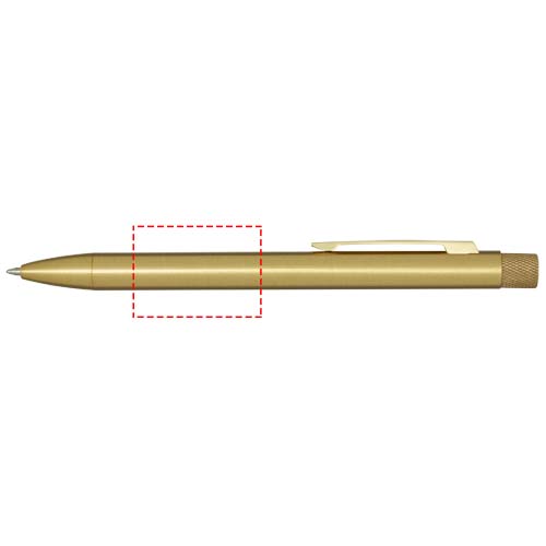 Шариковая ручка с цветным аэрозольным покрытием. Кнопка и наконечник изготовлены из латуни, ствол — из переработанной латуни, а зажим — из железа. Цвет чернил: синий. Длина непрерывной линии: 1000 метров. Размер пера: 1,0 мм. Поставляется в подарочной коробке.