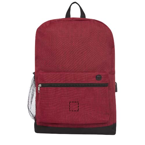 Передняя панель рюкзака для ноутбука оформлена с эффектом меланжевой расцветки, а нижняя часть и задняя панель окрашены в черный цвет. Оснащен большим главным отделением на молнии с чехлом для ноутбука 15,6" и передним отделением на молнии для быстрого доступа к мобильным устройствам. Поставляется с портом для USB, включая кабель USB-A с 1 выходным разъемом и 1 – входным. Имеет удобные плечевые ремни с подкладкой, ручку и сетчатый карман для бутылки с водой. Реальный цвет изделия может незначительно отличаться в зависимости от особенностей набивки, окраски и структуры ткани.