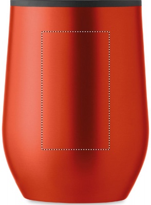 Дорожная чашка с двойными стенками из нержавеющей стали. Пластик внутри. Прозрачная пластиковая крышка. Емкость: 350 мл.