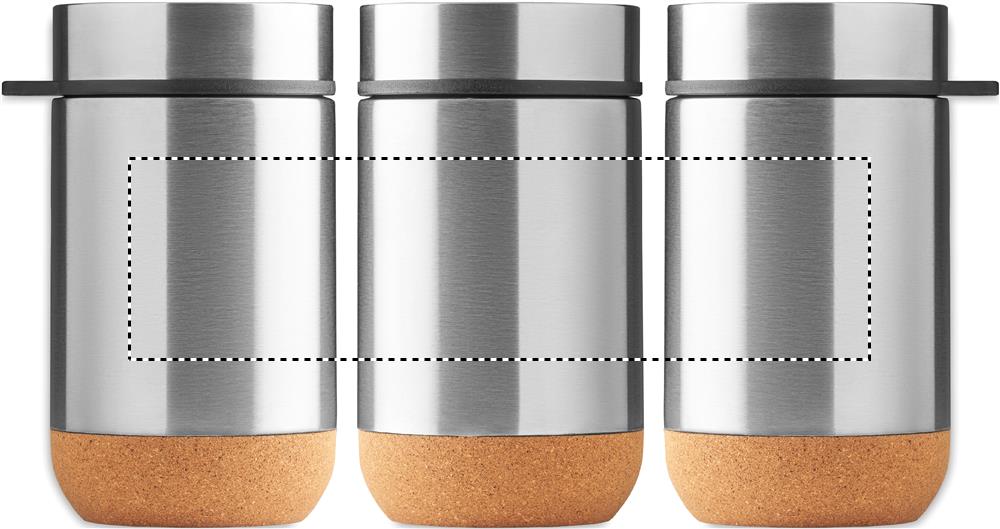 Металлическая емкость для хранения с двойными стенками из нержавеющей стали с винтовой крышкой и пробковым дном. В комплект входит ложка. Объем: 400 мл.