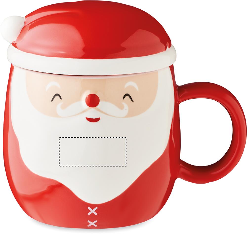 Керамическая кружка с украшением в виде Санта-Клауса и крышкой. Емкость: 370 мл.