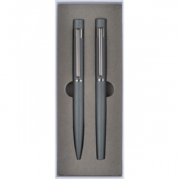 Элегантность и комфорт в одном наборе! Включает шариковую ручку и ручку-роллер, обе с синими стержнями и прорезиненной поверхностью для оптимального захвата и стильного дизайна. Идеально подходит для повседневного использования или в качестве личного подарка.