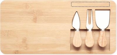 Бамбуковая сервировочная доска для сыра с 2 ножами и вилкой.