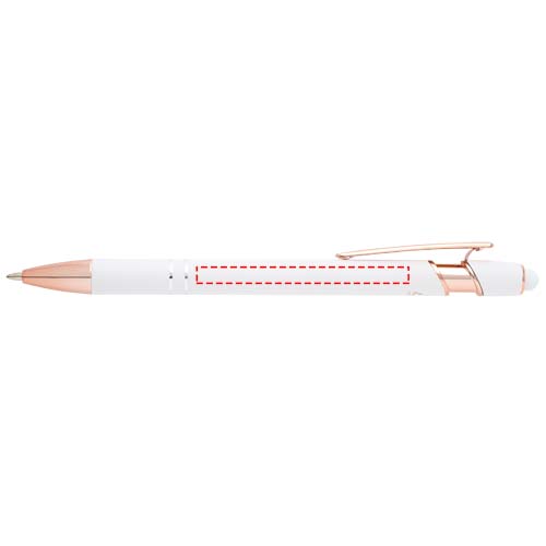 Шариковая ручка Nanna с покрытием из розового золота имеет корпус из переработанного алюминия и сенсорный стилус из силикона. Переработанный алюминий уменьшает количество отходов на свалках и помогает сохранять природные ресурсы для сокращения выбросов парниковых газов. Цвет чернил: черный. Длина непрерывной линии: 800 метров. Размер пера: 1,0 мм.