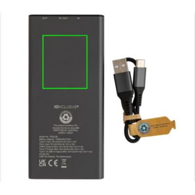 Сверхбыстрый зарядный аккумулятор, изготовленный из сертифицированного RCS (Recycled Claim Standard) переработанного алюминия и АБС. Общее содержание переработанных материалов: 27% от общего веса изделия. Сертификация RCS гарантирует полностью сертифицированную цепочку поставок переработанных материалов. Алюминий не теряет своих характеристик в процессе переработки и может перерабатываться бесконечно. В аккумулятор встроен долговечный литий-полимерный аккумулятор класса А емкостью 10 000 мАч. Выходной порт C поддерживает быструю зарядку до 18 Вт, а также быструю повторную зарядку в течение 3 часов. Индикаторы питания покажут оставшийся уровень энергии, поэтому вы всегда будете знать, когда следует подзарядить. Изделие и аксессуары на 100% не содержат ПВХ. В комплект входит зарядный кабель типа C из сертифицированного RCS переработанного алюминия, ТПЭ и ПЭТ. Упаковано в упаковку FSC® mix. Выход USB 5/3A, 9V/2A. 12V/1.5A. Выход типа C: 5V/3A, 9V/2A, 12V/1.5A. Вход типа C: 5 В/3 А, 9 В/2 А, 12 В/1,5 А. Вход Micro USB: 5 В/2 А, 9 В/2 А, 12 В/1,5 А.