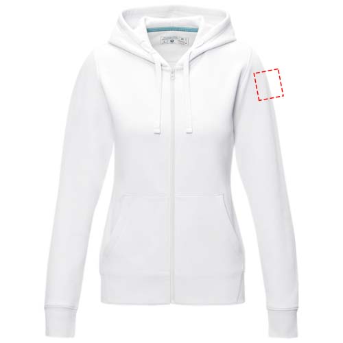 The Ruby women's organic recycled full zip hoodie – this hoodie showcases a blend of eco-conscious features that redefine modern fashion. With a soft brushed interior, it ensures a cozy feel. Made from a 280 g/m² blend of organic cotton and recycled polyester. This hoodie is designed with a fitted shape for a feminine look.