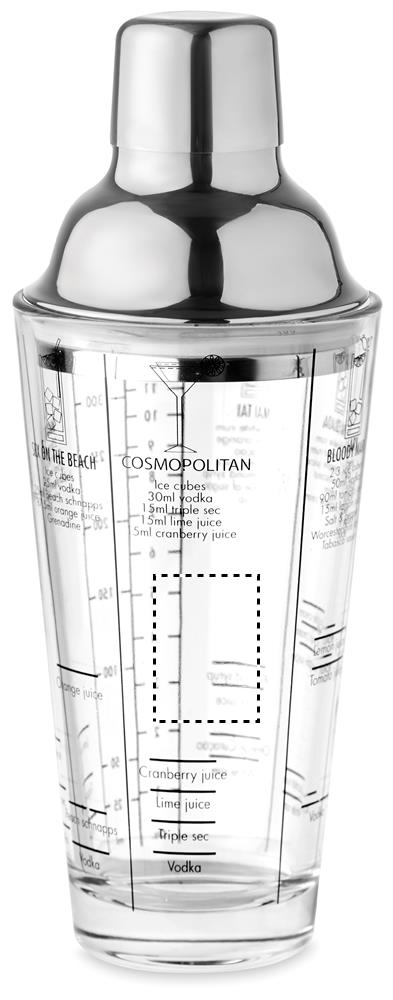 Стеклянный шейкер для коктейлей с крышкой из нержавеющей стали и ситечком. Печатные рецепты коктейлей и мерки на стакане. Емкость: 400 мл.