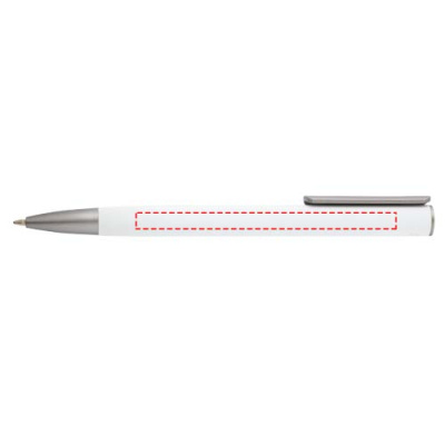 Шариковая ручка с корпусом из переработанного алюминия и посеребренным зажимом из пластика ABS. Цвет чернил: синий. Длина непрерывной линии: 800 метров. Размер пера: 1,0 мм.