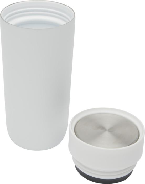 Förstklassig termos för användning när du är på språng med en praktisk öppningsmekanism i rostfritt stål som gör det möjligt att öppna den med en hand. RCS-certifierad stomme i rostfritt stål med slitstark ytbeläggning. Locket är tillverkat av RCS-certifierat rostfritt stål och PP-plast. Kopparplätering och keramisk beklädnad. Passar de flesta vanliga bilmugghållare. Håller dryckerna varma i tolv timmar eller kalla i 24 timmar. Levereras i en presentförpackning av återvunnen kartong. Volymkapacitet: 350 ml.
