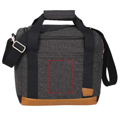 Del av Field & Co.® Campster-serien. Designen inspirerades i retro-camping och gammaldags scouter kombinerat med moderna behov. Denna eleganta kylväska kombinerar ull/polymaterial och vinylprydnader med funktionen av en isolerad kylare med flaskavskiljare. Stansade inlagor sammanfogas till enskilda fack för tolv enskilda 350 ml-flaskor. När de inte används trycks de ihop och kan lagras i påsens botten. Inkluderar en flasköppnare av märket Field & CO.