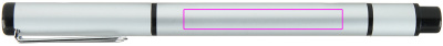 Kulspetspenna i aluminium med svartskrivande refill och gul överstrykningspenna på motsatt sida. Vi graverar din logotyp på skaftet.
