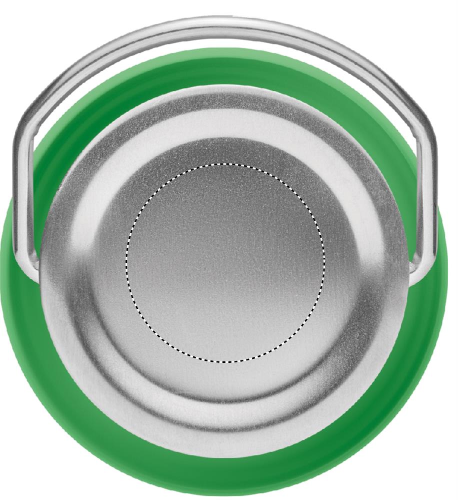 Termo flaska med dubbla väggar i rostfritt stål (90 % återvunnet rostfritt stål och 10 % rostfritt stål) med lock med handtag. Läckfri. Kapacitet: 500 ml.