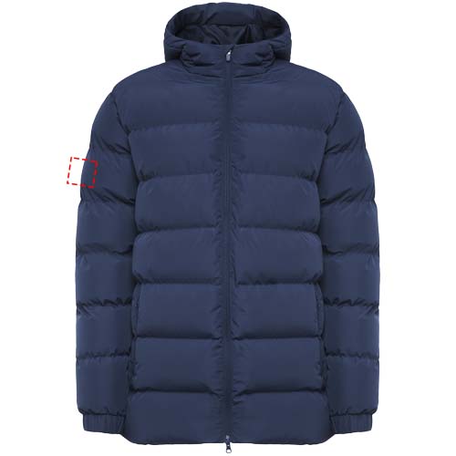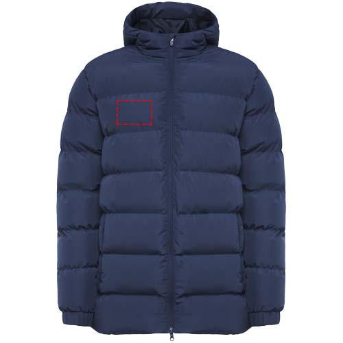 Vadderad sportparkas. Huva med topp. Dragkedja framtill med matchande löpare och hakskydd. Elastiska muddar. Två sidfickor med dragkedja. Invändig bröstficka på vänster sida. Inre åtkomst för hantering. Borttagbar etikett. Vattentät. Vindtät.