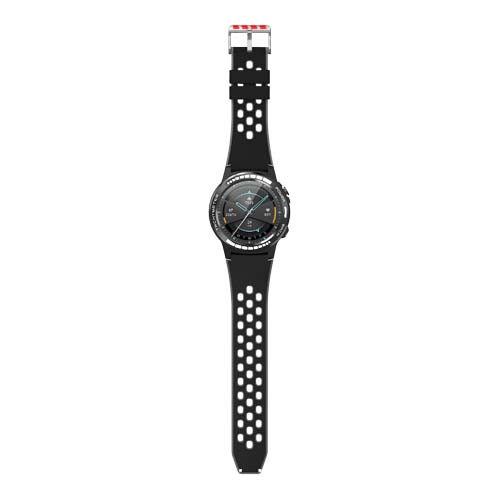 Smartklocka med GPS som genererar en karta med senaste sträcka. Inkluderar en kompass och barometer. Övervakar puls och blodtryck. Multisportläge, steg och kaloriräknare, sträcka som har tagits. Den övervakar även sömnkvalitet och håller reda på dagliga fysiska aktiviteter. SIM-kortsplats (SIM-kort ingår ej). Meddelanden om e-post, samtal, meddelanden och sociala nätverk. Siri Röstassistent. 360 mAh litiumjonbatteri. Bluetooth 4.0-anslutning. Standby-läge i 7 dagar.