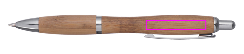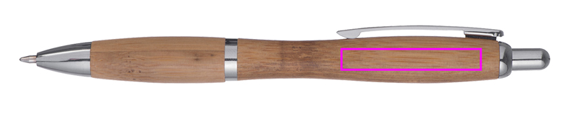 Bambu kulpenna med blåskrivande refill. Vi graverar din logotyp under klämman.